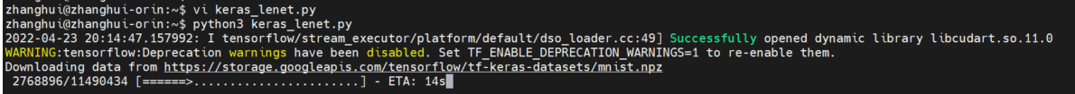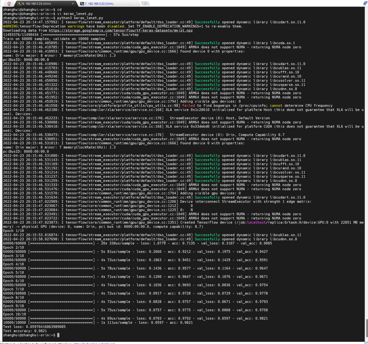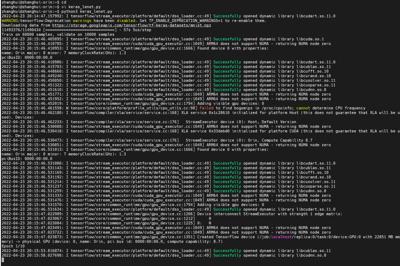 LeNet是典型的手写数字识别网络,常用于初学者的入门,我们就用它来试一下Orin的深度学习功能: