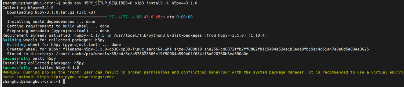 sudo env H5PY_SETUP_REQUIRES=0 pip3 install -U h5py==3.1.0