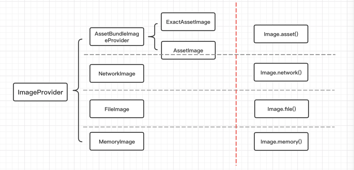 Image 通过 ImageProvider 来展示图片,Flutter 提供了多种方式,与各类命名构造方法对应;