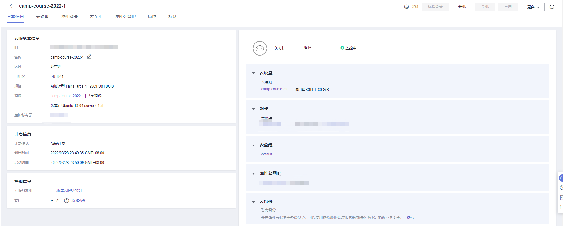 1. 按照官方B站视频介绍,接收镜像,并创建云服务器;如果不想看视频,可以参照其他开发者的教程配置环境,推荐教程【CANN训练营进阶班应用课笔记】大作业1实战趟坑记录。