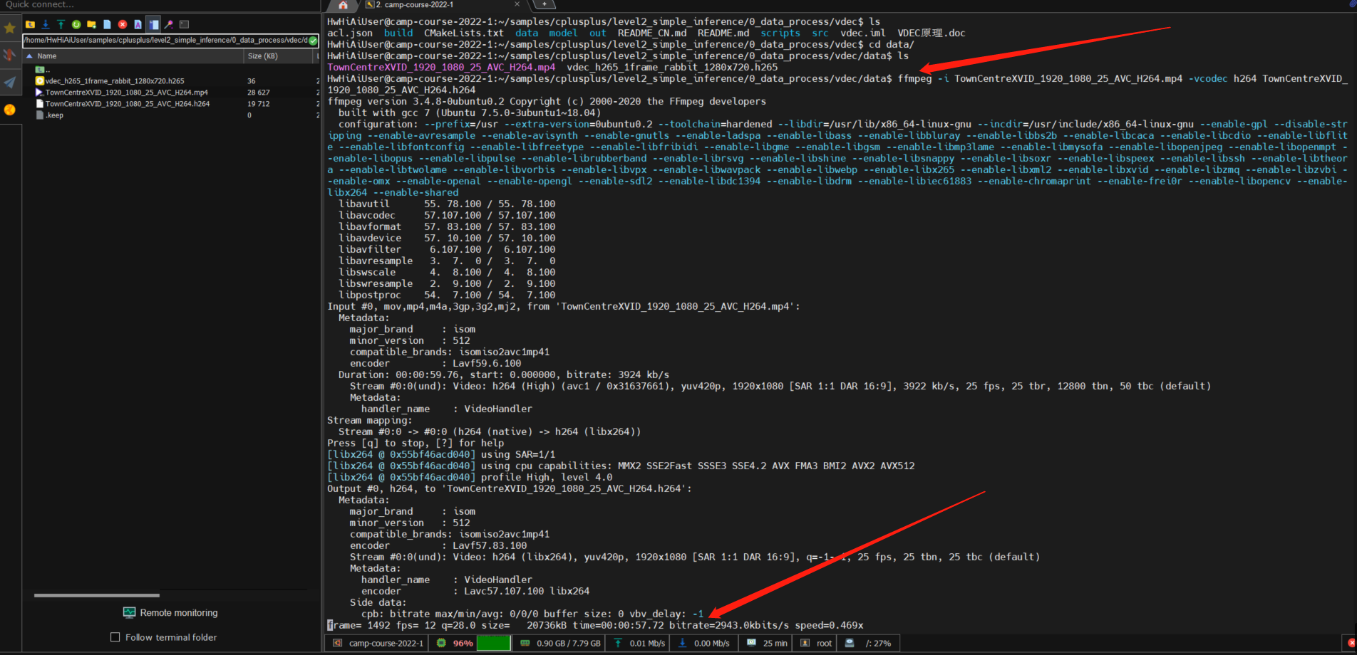 接下来操作!因为昇腾处理器中的视频编解码专用硬件电路无法直接对mp4格式封装的视频操作,要求输入是H.264/H.265视频流,所以我们先对输入的mp4视频做“拆装”,可以通过ffmpeg来做: