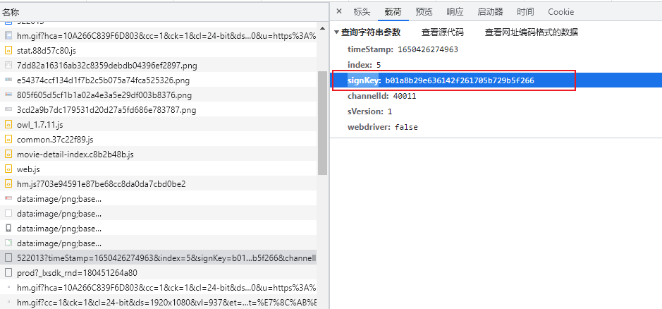 本以为直接进入字体加密解密逻辑,本案例就可以解决,但是当打开请求头之后,发现出现了一个请求参数 signKey,而且还加密了,那解决字体反爬前,先解决这个加密问题吧。