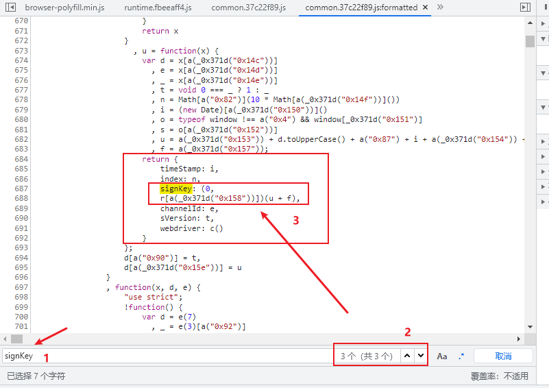 打开控制台,直接检索 signKey 参数,发现只有一个文件所有涉及。