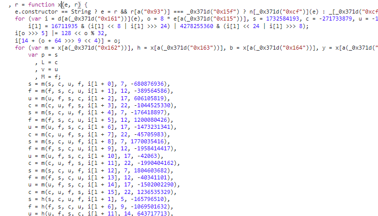 当发现关键字 _0x371d 时,就知道,这里需要一点点扣 JS 代码了,又是一个细致活。