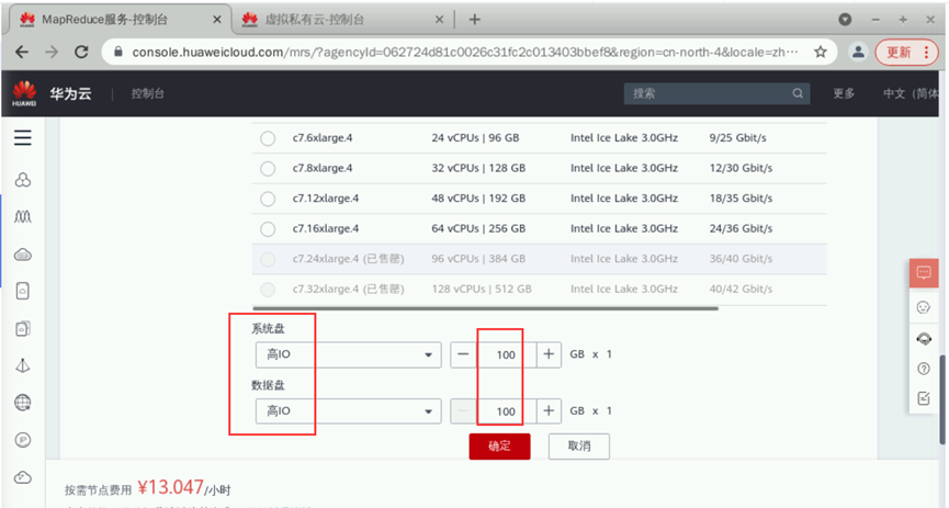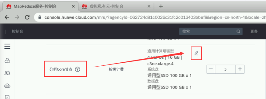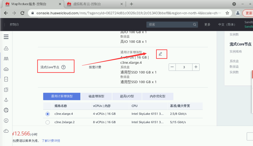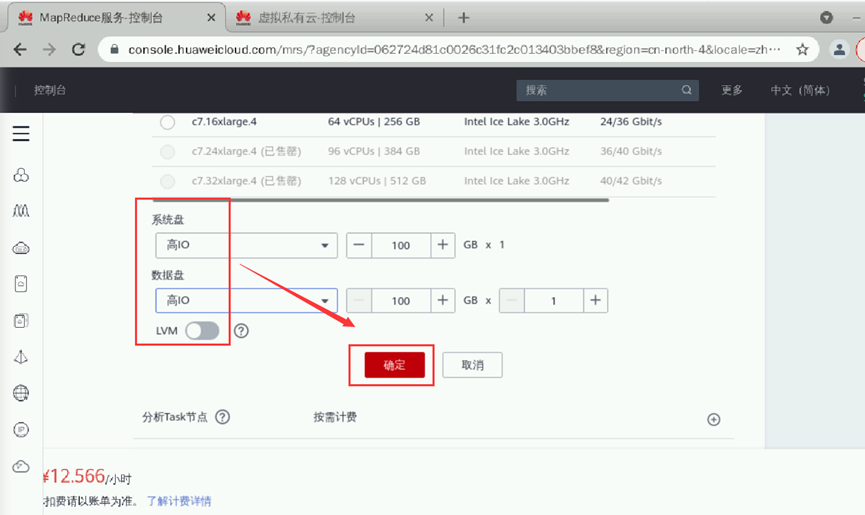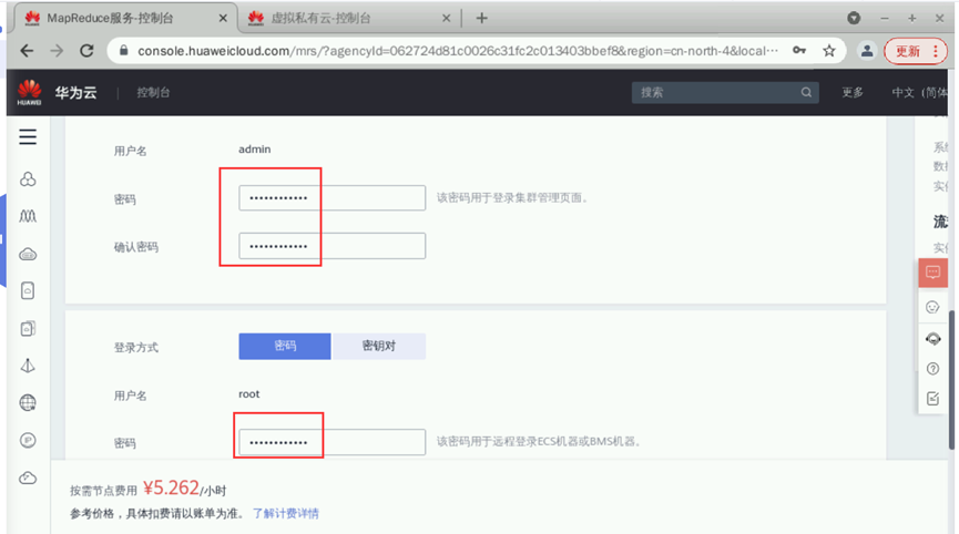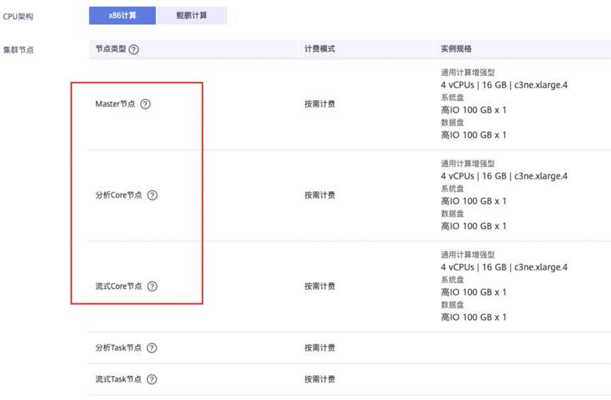元数据:本地元数据完成后单击“下一步”。硬件配置如下:【计费模式】:按需计费【可用区】:默认【虚拟私有云】:点击“查看虚拟私有云”,进入虚拟私有云界面,点击“创建虚拟私有云”,所有参数默认,点击“立即创建”即可。回到购买集群页面,点击刷新按钮,即可选中创建的虚拟私有云。【子网】:虚拟私有云创建完成后子网自动创建并选中【安全组】:自动创建【弹性公网IP】:暂不绑定