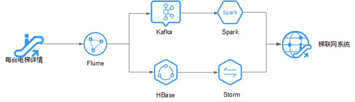 例如在梯联网行业,智能电梯的数据,实时传入到MRS的流式集群中进行实时告警。