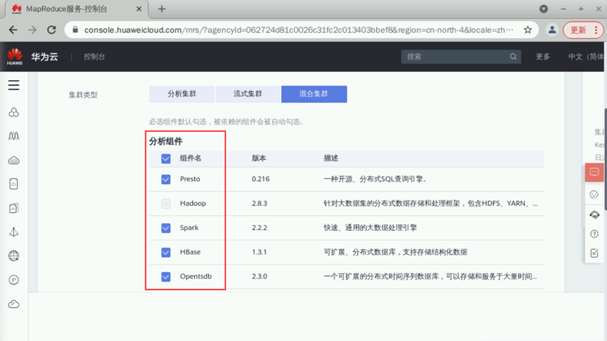 - 在开通MapReduce服务时集群类型有分析集群、流式集群、混合集群,这三者有何不同之处,用户在购买时该如何进行选择?