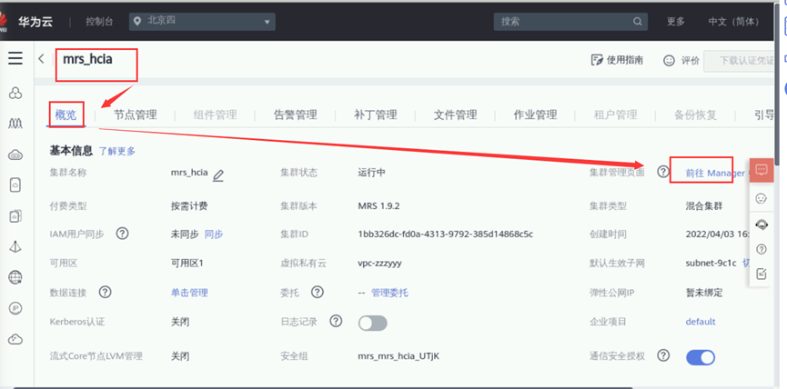 点击“登录”,即可进入MRS Manager页面。