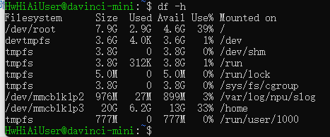 还有,张小白其实也尝试了使用lvm进行扩容的方式。但是,首先,/home文件系统所在的 /dev/mmcblk1p3 设备(分区)并没有做成LVM逻辑卷,所以无法通过加入pv,vg,lv的方法去做lv扩展,进而扩大文件系统的空间,另外,lvm的加载需要重链linux内核才能让系统识别,这个毕竟是CANN团队做的镜像,张小白不敢贸然造次,所以也没敢这样操作。