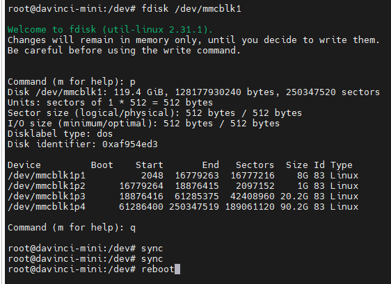 fdisk /dev/mmcblk1