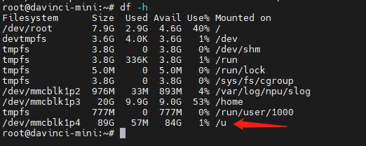 您可以把新的代码或者数据集扔到/u目录下,就可以使用这块未开垦的空间了。