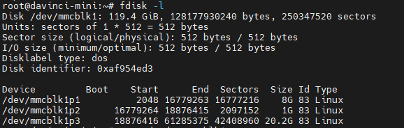 整个TF卡的设备名称为 /dev/mmcblk1