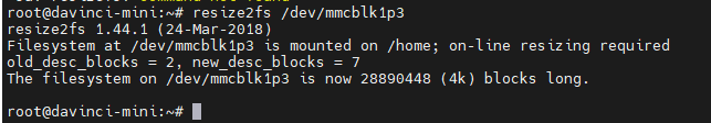 需要使用resize2fs命令将 /home文件系统对应的设备执行更新: