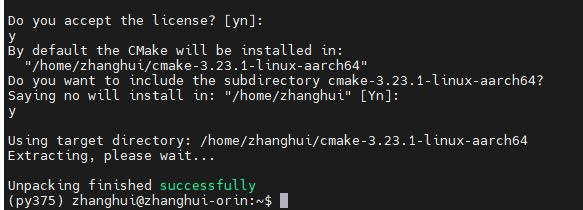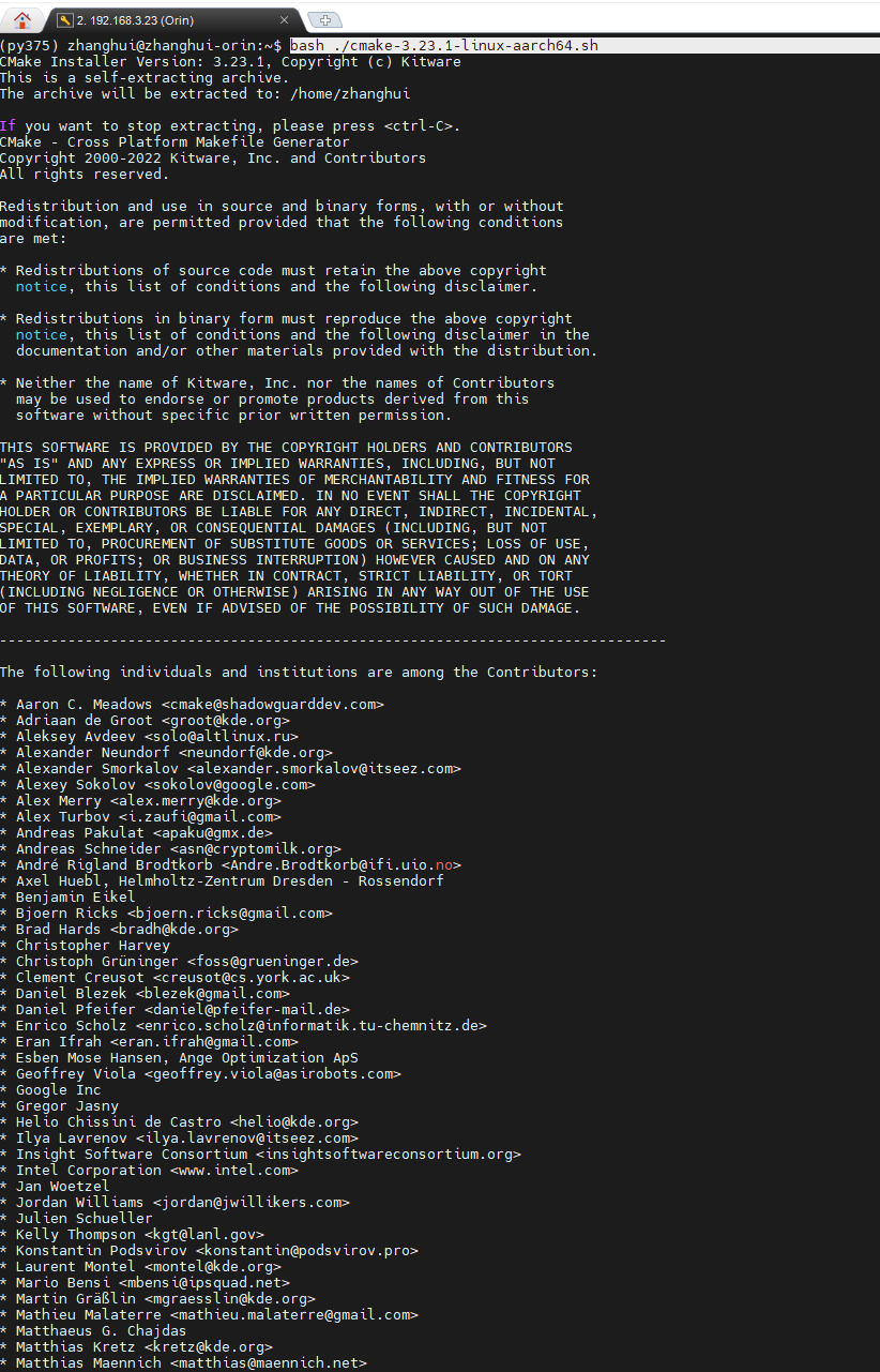 bash ./cmake-3.23.1-linux-aarch64.sh