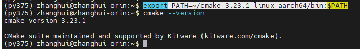 export PATH=~/cmake-3.23.1-linux-aarch64/bin:$PATH
