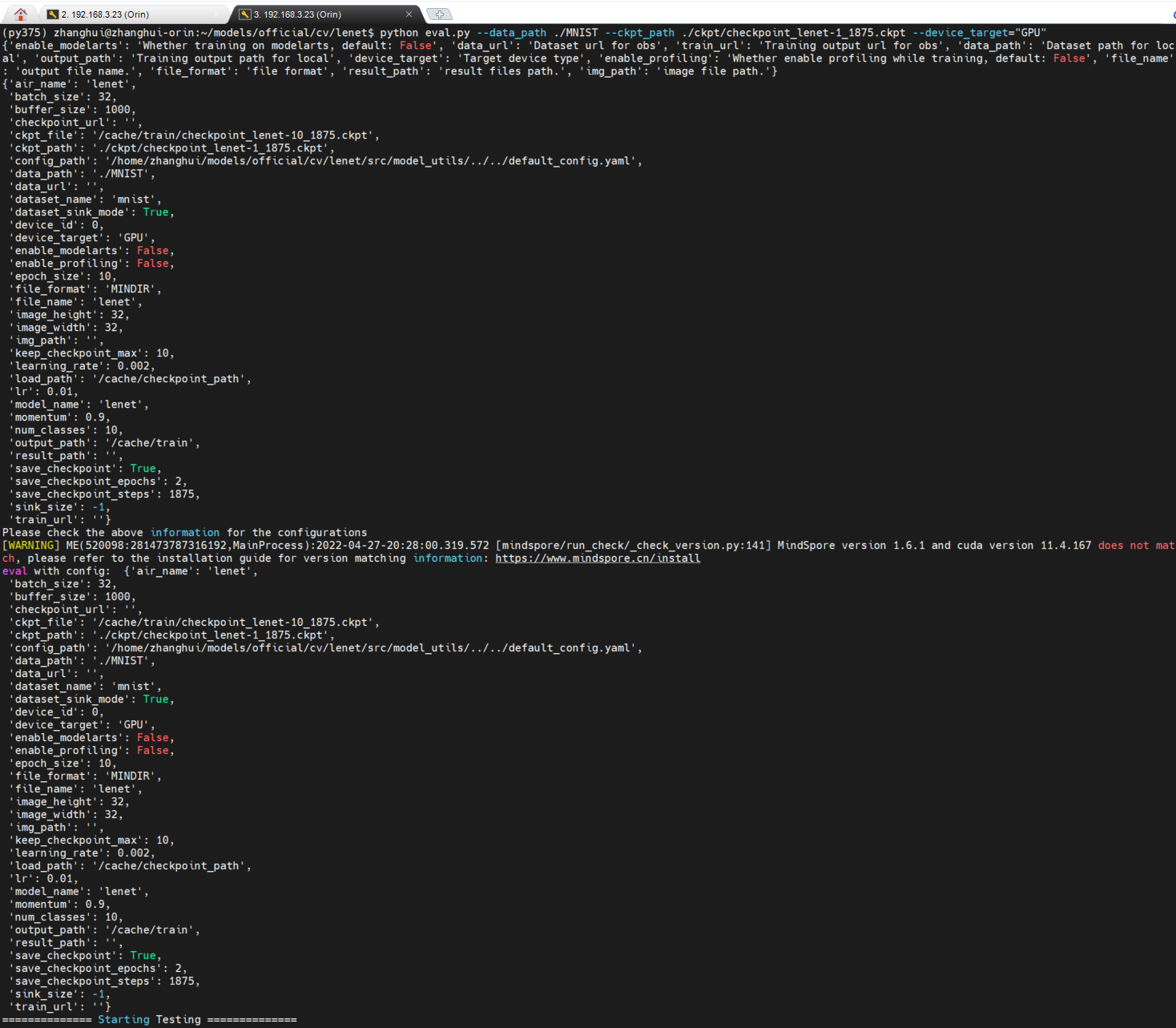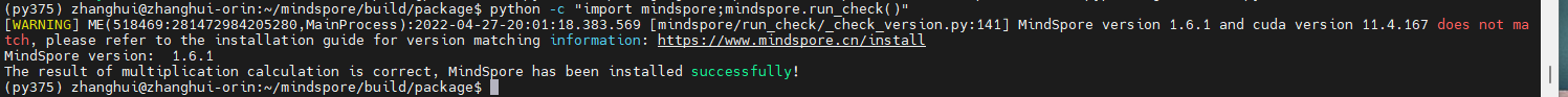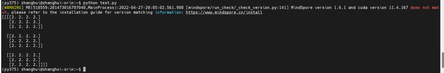 结果能出来,但是时间比较长。看输出好像是orin的CUDA版本为11.4,而MindSpore建议的CUDA版本是11.1。