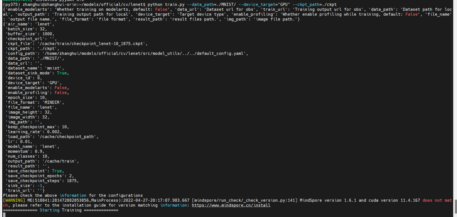 python train.py --data_path=./MNIST/ --device_target="GPU" --ckpt_path=./ckpt