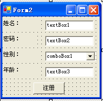 } private void button2_Click(object sender, System.EventArgs e) //Form1中注册按钮的事件代码 { } } public class Form2 : System.Windows.Forms.Form { private void button1_Click(object sender, System.EventArgs e) //Form2中注册按钮的事件代码 { } } |