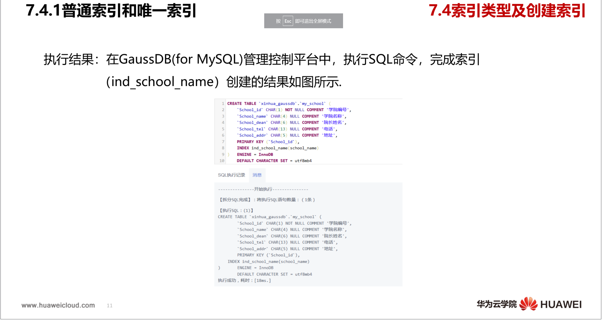 4.2. 在GaussDB(for MySQL)中创建唯一索引