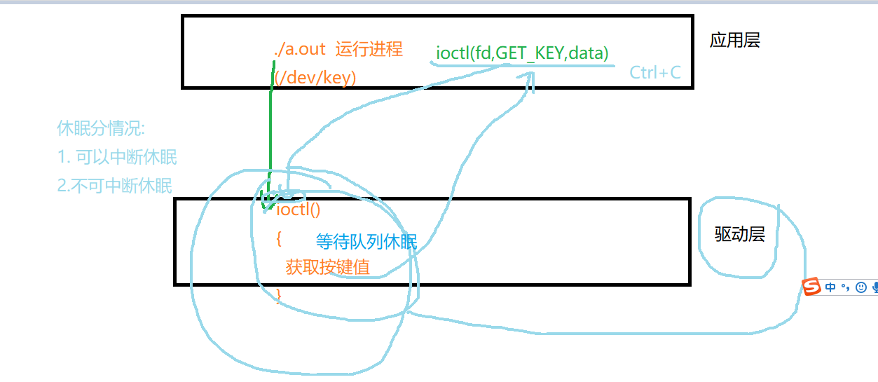 等待队列: 在驱动里阻塞进程的一种方式,可以将进程加入到等待队列里休眠。