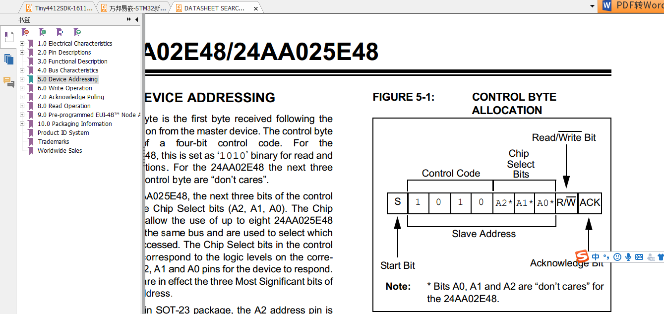 24AA025E48芯片容量: 256字节 、一页的大小16个字节