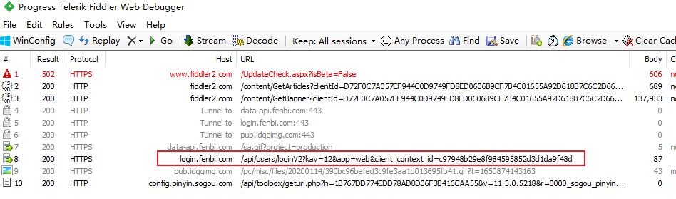 本次抓包软件使用 fiddler,截获到的请求如下所示: