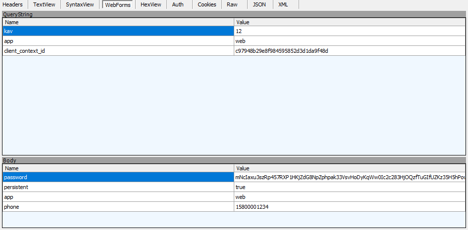 - 请求网址: https://Python 脱敏处理/api/users/loginV2?kav=12&app=web&client_context_id=c97948b29e8f984595852d3d1da9f48d