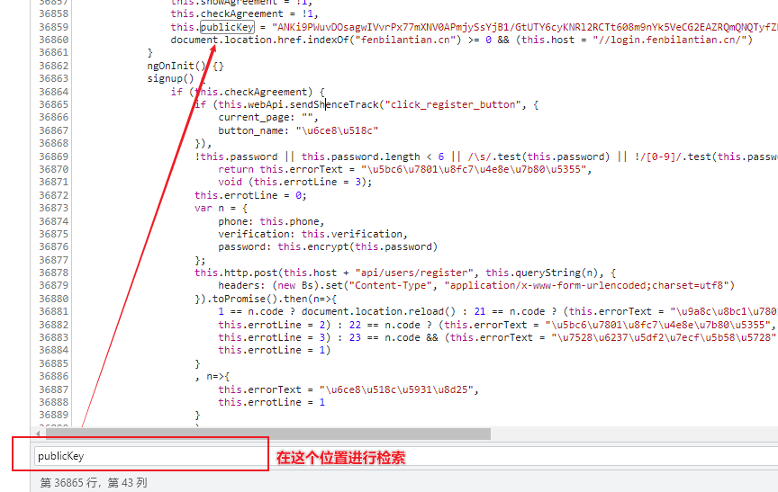 在开发者工具中直接检索关键字,得到下图结果。