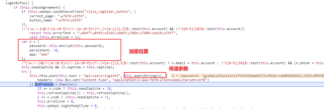 定位到该方法中,发现了加密位置,函数,以及请求数据的相关逻辑。