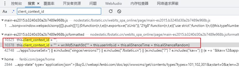 此时还剩下一个 URL 中的加密参数 client_context_id 还未解决,寻找一下相关代码。