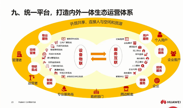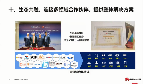 核心能力建设——生态共融,连接多领域合作伙伴,提供整体解决方案。我家云和华为是长期战略合作伙伴,尤其在智慧园区领域。