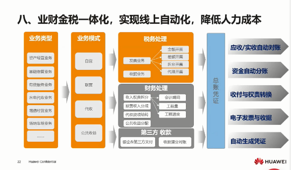 核心能力建设——业财金税一体化,实现线上自动化,降低人力成本。业务财务税务融为一体,降低企业管理成本。