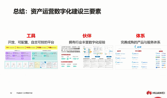 要做好资产数字化运营,以下三个方面非常重要:第一要有一个好的工具,即好的平台,平台能随着你的业务和管理模式变化而随机变化;第二有一个好的伙伴,拥有行业丰富的数字化经验,可以少走弯路,降低成本;第三有一个完善的体系,除了企业内部的管理和制度体系,完善成熟的产品与服务体系也非常重要。