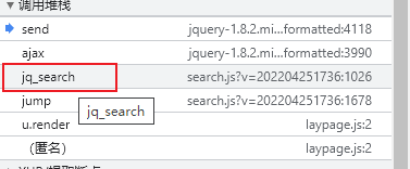 在断点调试堆栈中,看到 jq_search 函数,可以大胆的点击,估计服务器响应的解码工作就在该函数中。