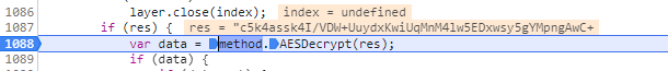 果然响应内容是加密的,由历史经验可以知道,这段大概率又是 AES 加密,只是现在还不知道密钥,需要通过断点进行调试。