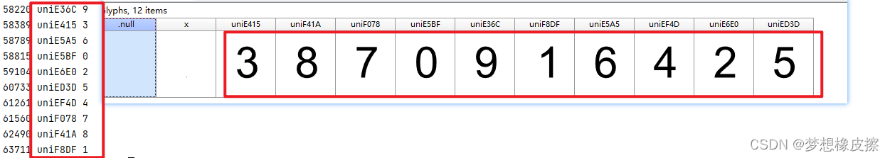 此时又发现了 uni 开头的编码,而且前面出现了一堆数字,接下来就将这个数字进行绘制。
