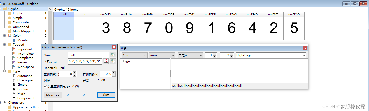 下载文件之后,可以使用 FontCreator 软件打开该文件。