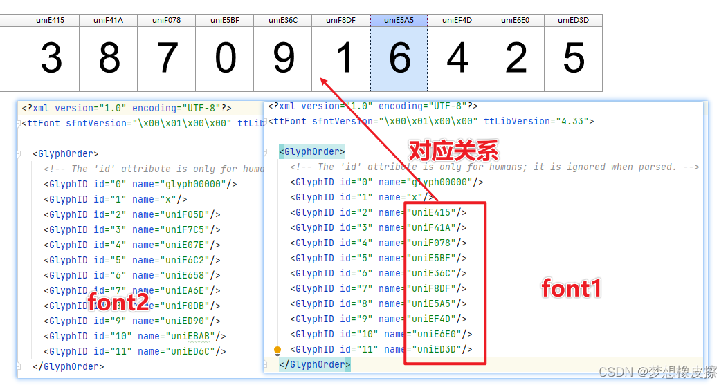 这里是字体编号的缩写,字体具体的绘制内容在代码下侧,对比一下可以发现如下内容。