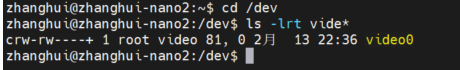 我们登陆到Nano上,到/dev目录下查看摄像头设备:
