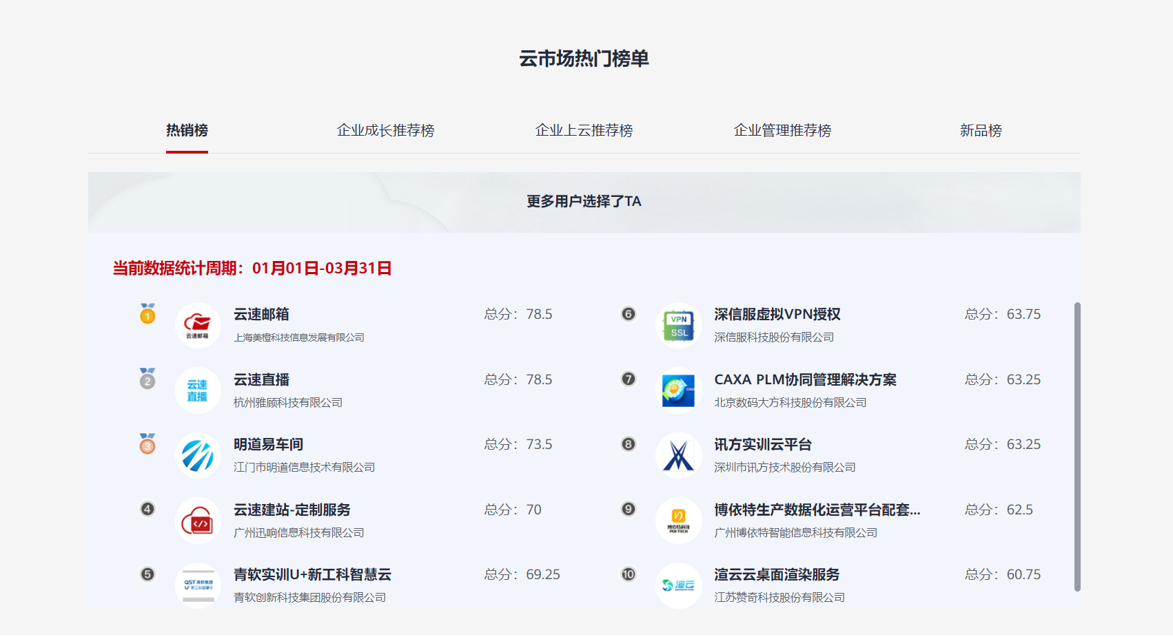 华为云云市场商品推荐榜