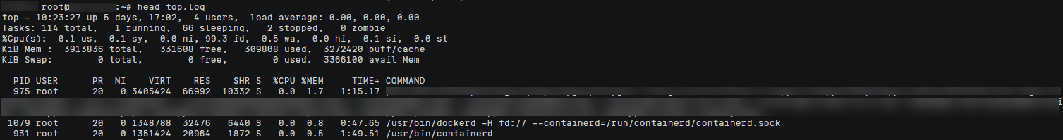 nohup top -n 99999 -d 60 -w 2048 -b -c -o %MEM > /home/ma-user/work/logs/top.log