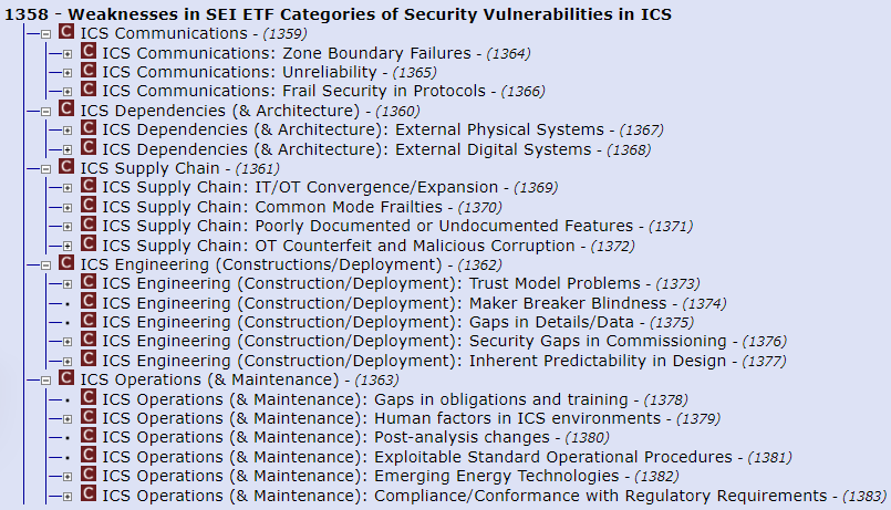 2.1. CWE-1358视图: 安全能源基础设施执行工作组(SEI EFT)给出的工业控制系统(ICS)中存在的安全缺陷分类