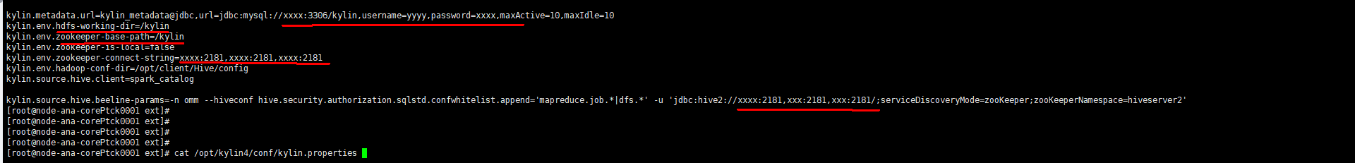 修改/opt/kylin4/conf/kylin.properties中的mysql及hive的配置项