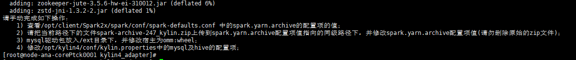 [root@node-ana-corePtck0001 kylin4_adapter]# hdfs dfs -put spark-archive-247_kylin.zip hdfs://hacluster/user/spark2x/jars/8.1.0/