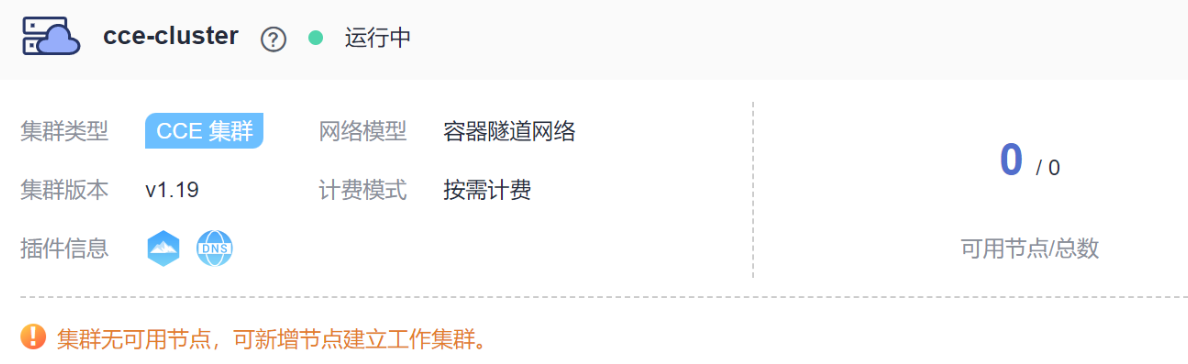 集群创建成功后,您还需要在集群中创建运行工作负载的节点。