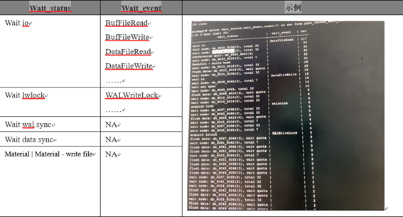 SELECT wait_status,wait_event,count(*) AS cnt FROM pgxc_thread_wait_status
