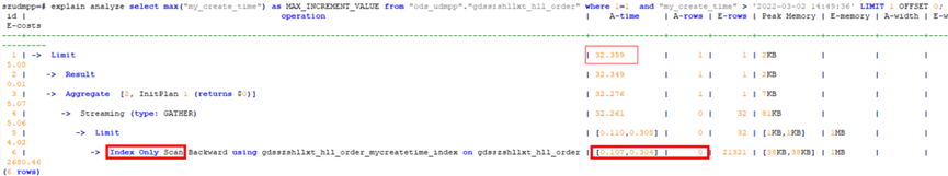 针对max列增加索引后,语句耗时从26s优化到32ms,极大减少IO消耗