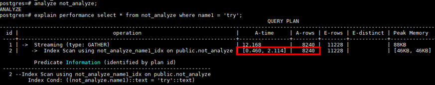 对目标表analyze后,计划能够自动选择索引,性能从3s+优化到2ms+,极大降低IO消耗
