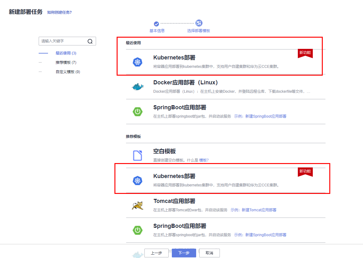新建模板时,现在可以选择模板:Kubernetes部署。