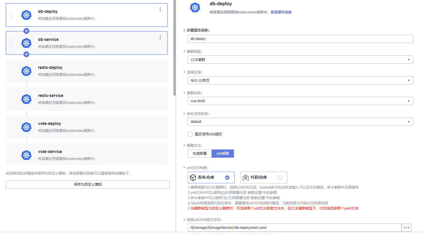 由于本项目通过10个yaml文件共同配置,所以需要添加相同的“Kubernetes部署”步骤共计10个,每个步骤都对应一个yaml文件。